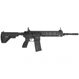 | Descriptif | Heckler & Koch qualifie sa célèbre série HK416 de "prochaine évolution du fusil d'assaut". Le HK416 F-S, en version AEG calibre 6 mm BBs, incarne cette évolution sur les terrains d'airsoft. Adaptée des besoins de l'armée française, cette variante intègre un garde-main M-LOK/Picatinny, une crosse D-buttstock; un frein de bouche spécifique et un attache sangle sur le rail pPicatinny. Elle est équipée d'un MOSFET, d'un shoot-up ajustable et d'un canon de précision de 6,03 mm de diamètre doté d'un filetage M14x1, adapté aux traceurs et silencieux. Le chargeur, avec son design distinctif de la Génération 3, peut contenir jusqu'à 120 billes, avec une option de réglage à 30 billes. Conforme aux caractéristiques de la version A5 du HK416, cette réplique est entièrement ambidextre : le sélecteur de tir, le verrou de culasse et le bouton de libération du chargeur sont accessibles des deux côtés. Une visée Flip-up spéciale est également montée sur le rail supérieur du quadrail Picatinny. |