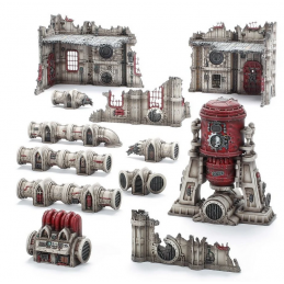 - 12 éléments de décor à emboîter moulés en plastique, dont des ruines et des canalisations, plus un énorme Temple Thermo-échangeur. Le tout a été conçu pour être compatible avec les kits de décor existants, ce qui en simplifie l'ajout à votre collection existante.